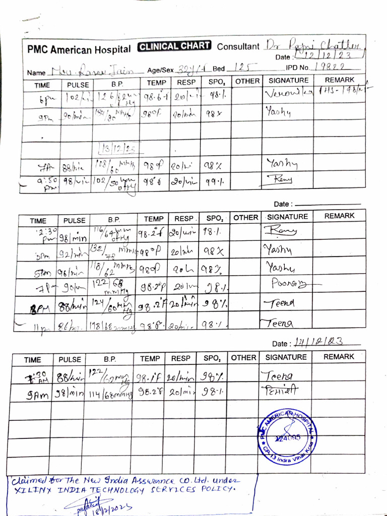 TIME PULSE B.P. TEMP RESP SPO, OTHERsIGNATURE REMARK