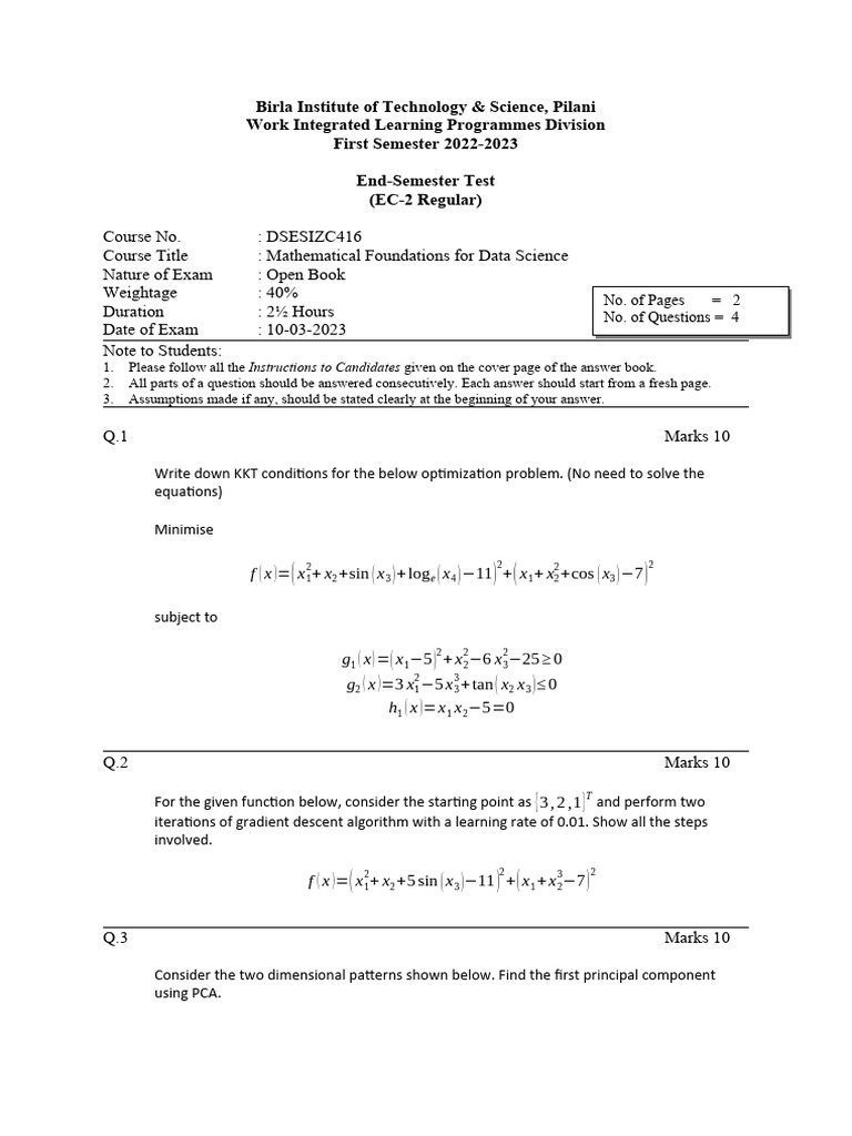 Course Title : Mathematical Foundations for Data Science