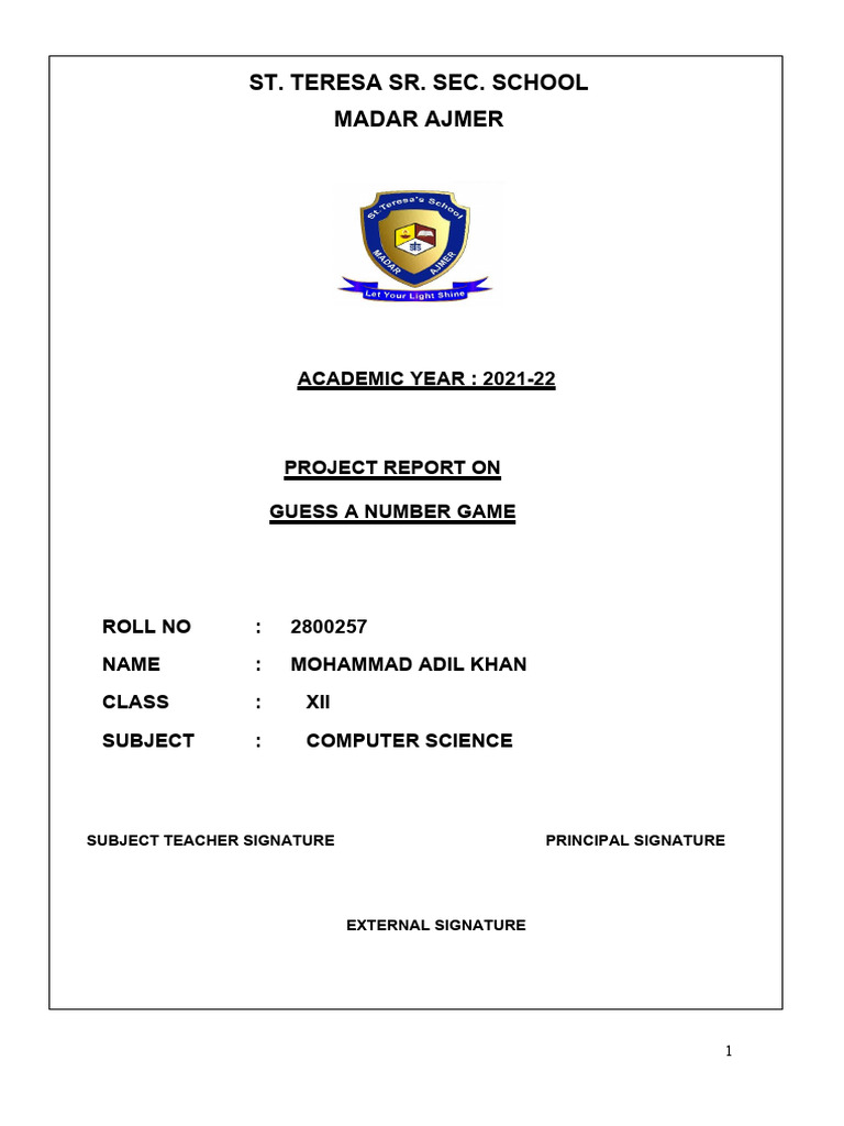 entitled GUESS A NUMBER GAME in the subject Computer Science laid