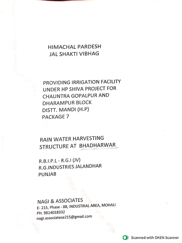 © scanned with OKEN Scannerbr REPORT FOR CONSTRUCTION oF CHECK OAM / PAIN WATER HARVESTING StRUCTURE