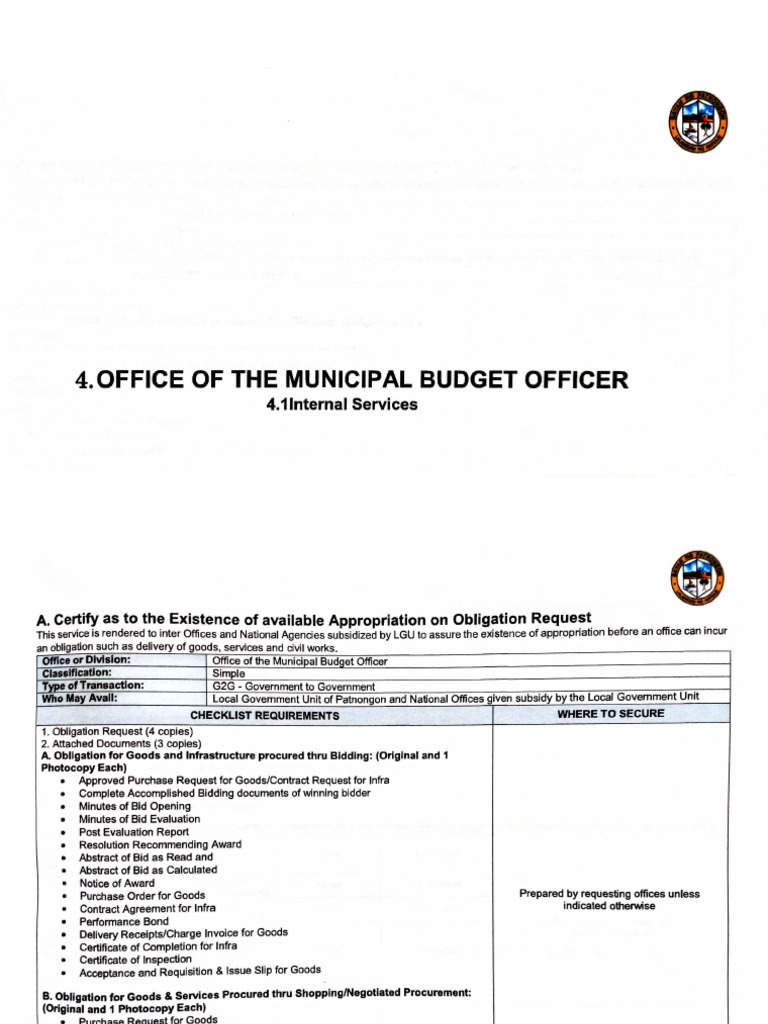 ‘This service is rendered to inter Offces and National Agencies subsidized by LGU to assure the existence of appropriation before an ofice can incur