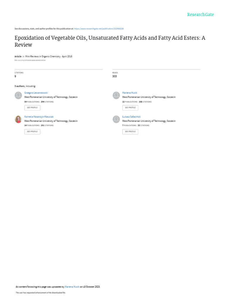 E-mail: grzegorz.lewandowski@zut.edu.pl idized oils involves the reaction with low molecular weight