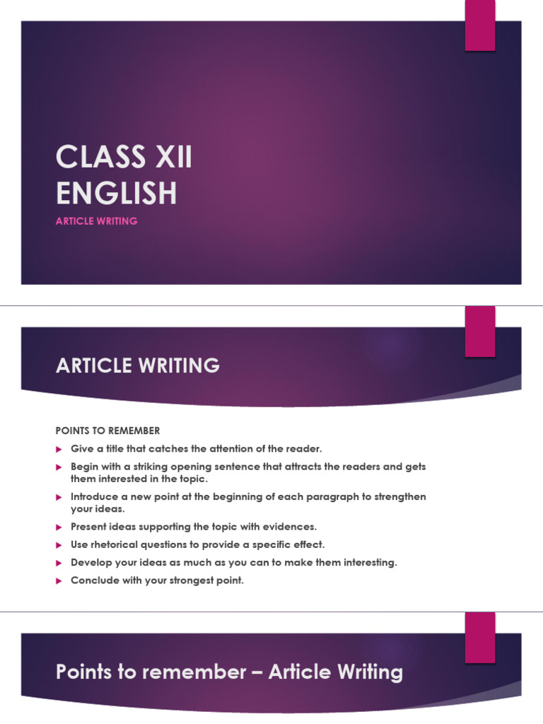 Points to remember – Article Writing