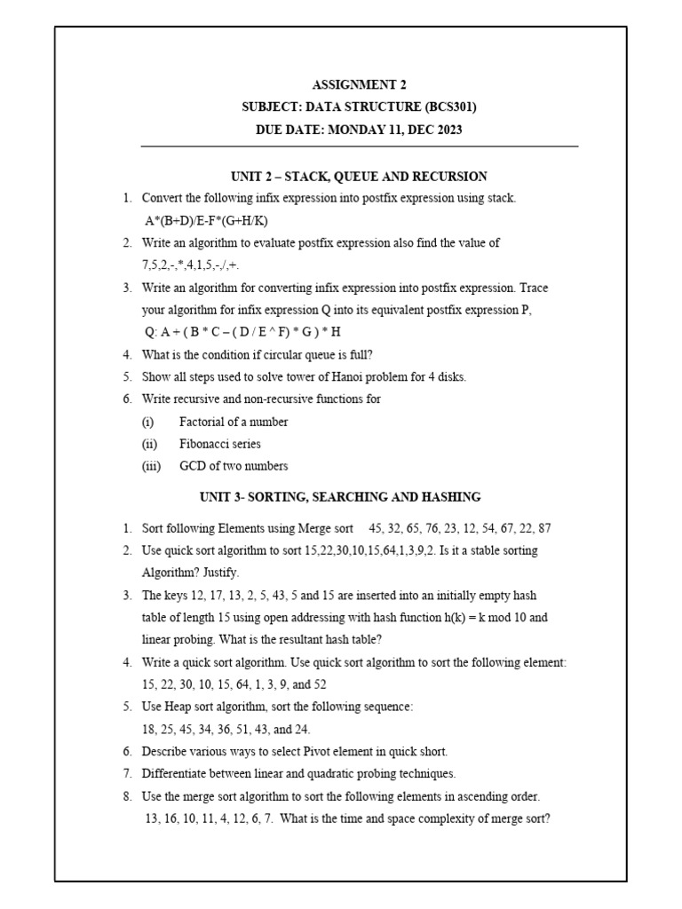 SUBJECT: DATA STRUCTURE (BCS301)