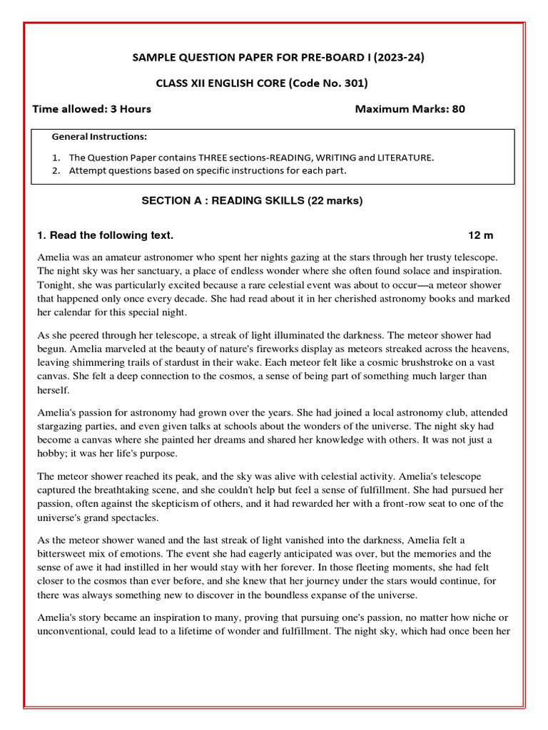 1. The Question Paper contains THREE sections-READING, WRITING and LITERATURE.