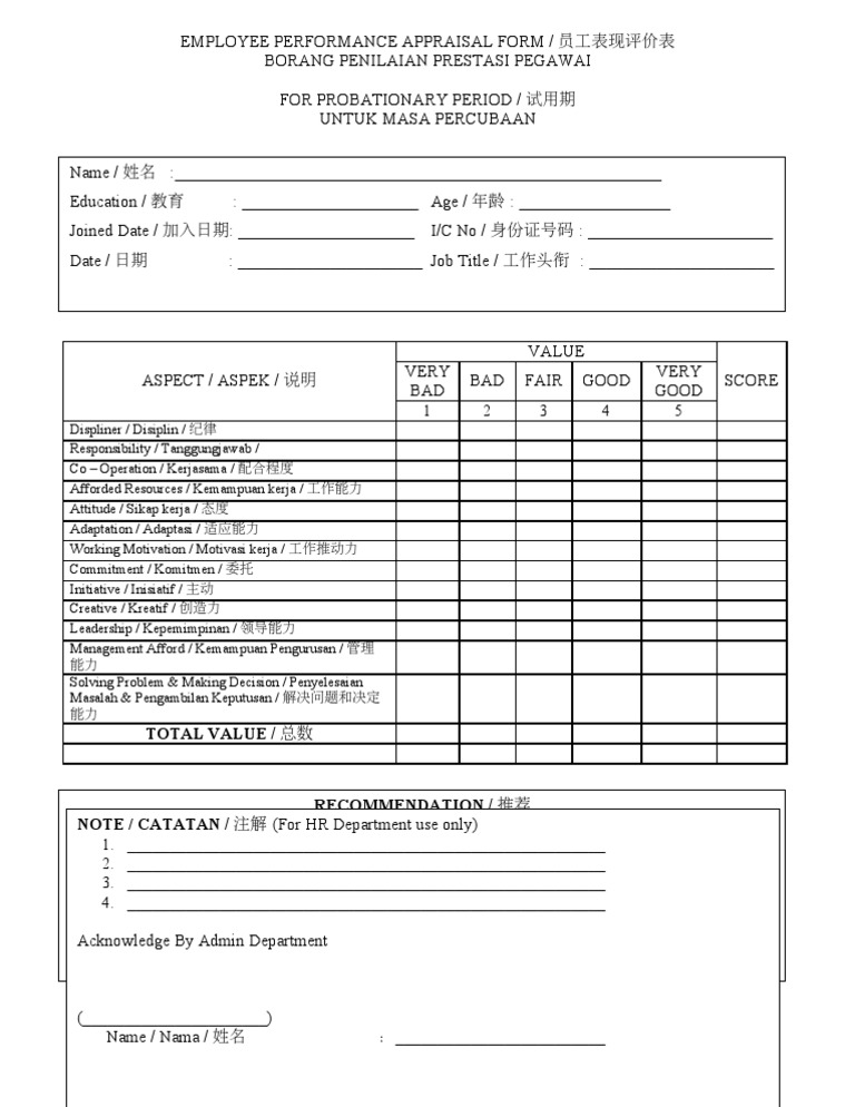 BORANG PENILAIAN PRESTASI PEGAWAI