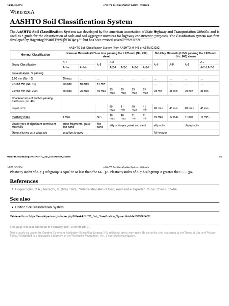 1/2/23, 5:32 PM AASHTO Soil Classification System - Wikipedia
