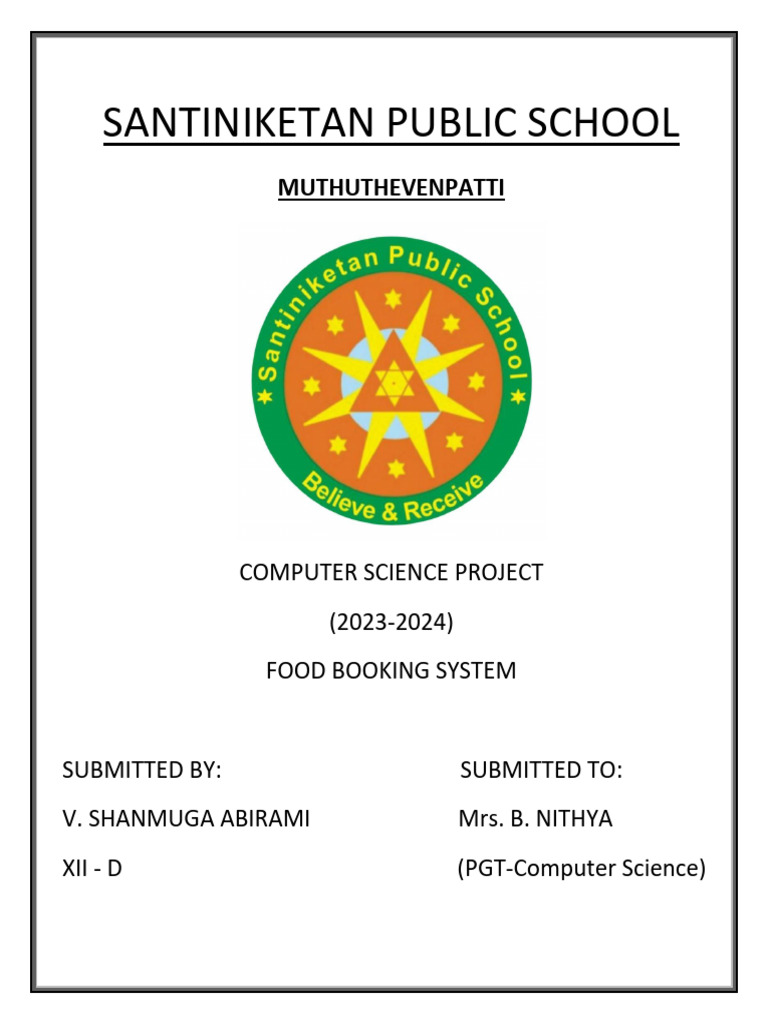 SCHOOL, The project report on “FOOD BOOKING SYSTEM”