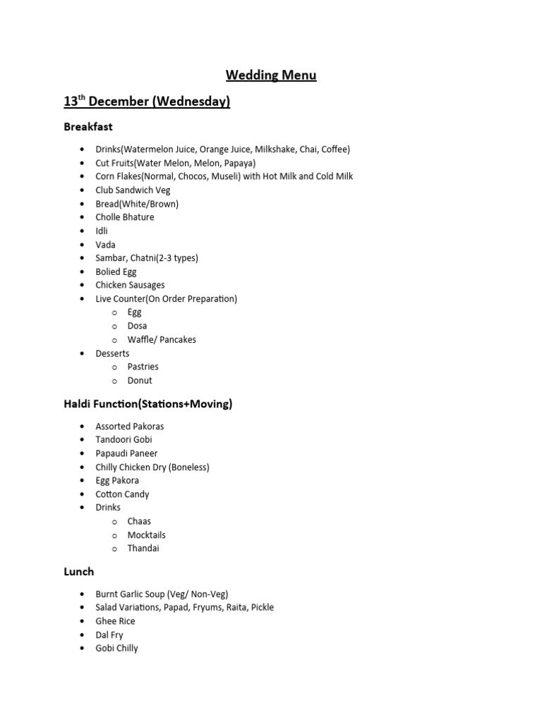 Wedding Menu