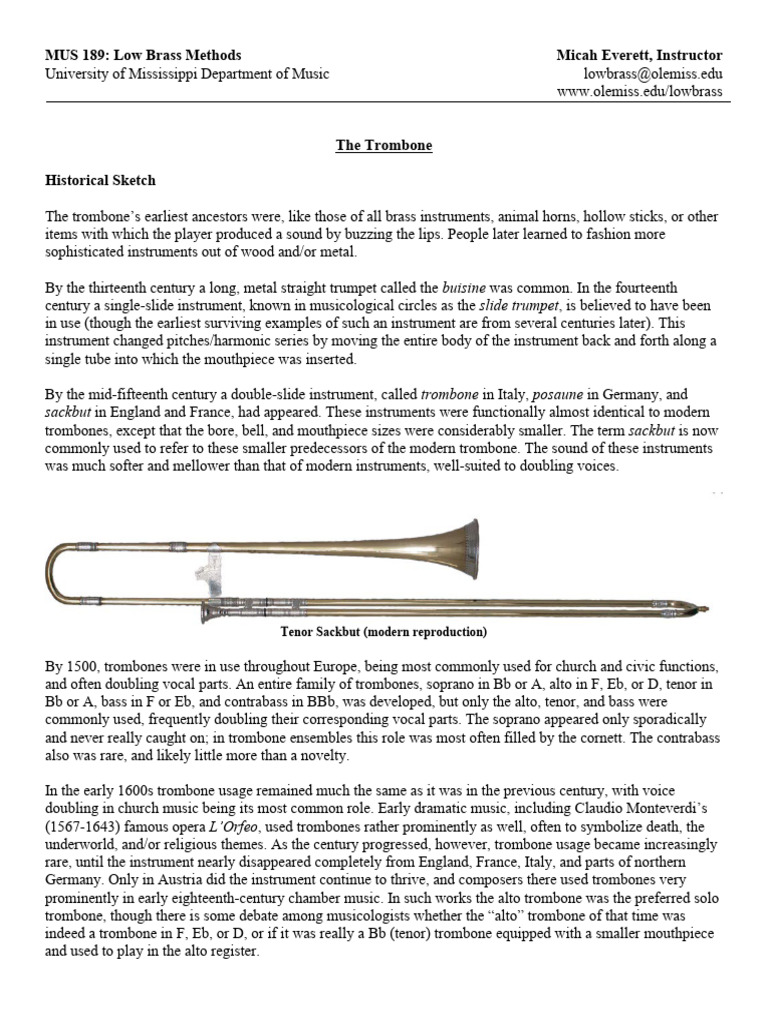 MUS 189: Low Brass Methods (Everett), Trombone Notes, p.3