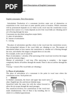 The Place and Manner of Articulation of the English Consonant Sounds