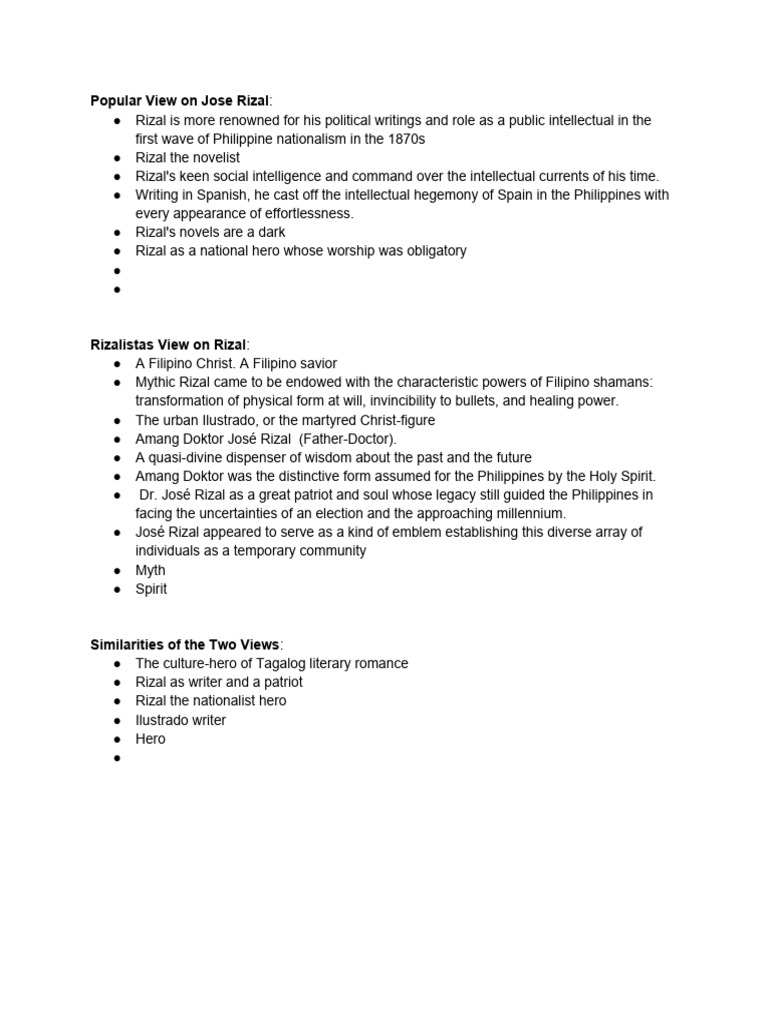 Popular View on Jose Rizal: