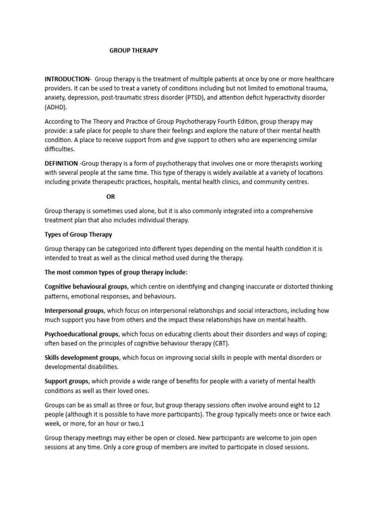 INTRODUCTION- Group therapy is the treatment of multiple patients at once by one or more healthcare