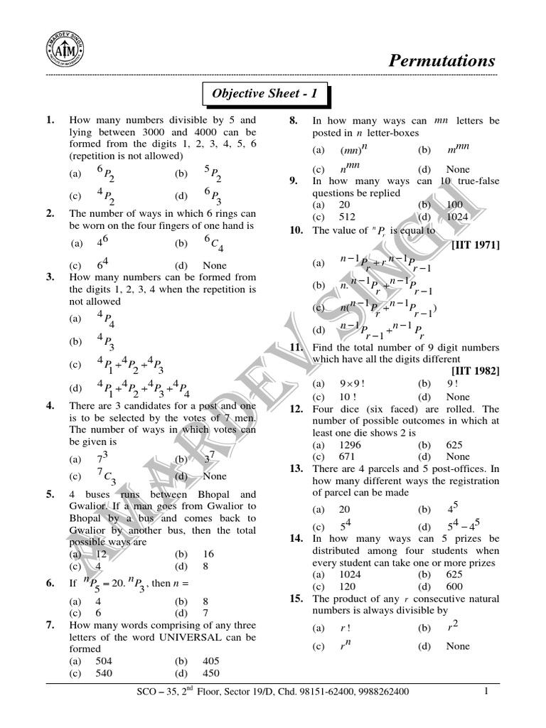 (c) 10 (d) 18 without repetition is