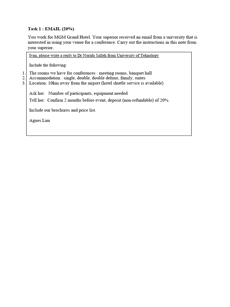 interested in using your venue for a conference. Carry out the instructions in this note from
