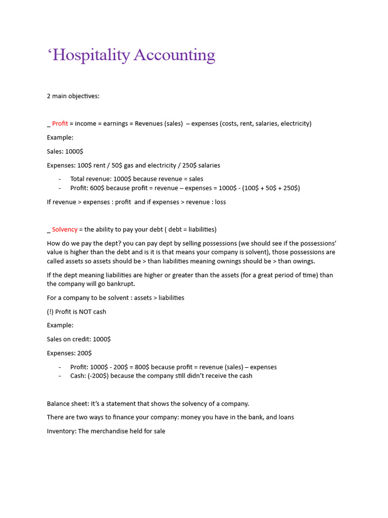 - Sales: either you get paid cash or promise to pay later (on credit or on account) (the account