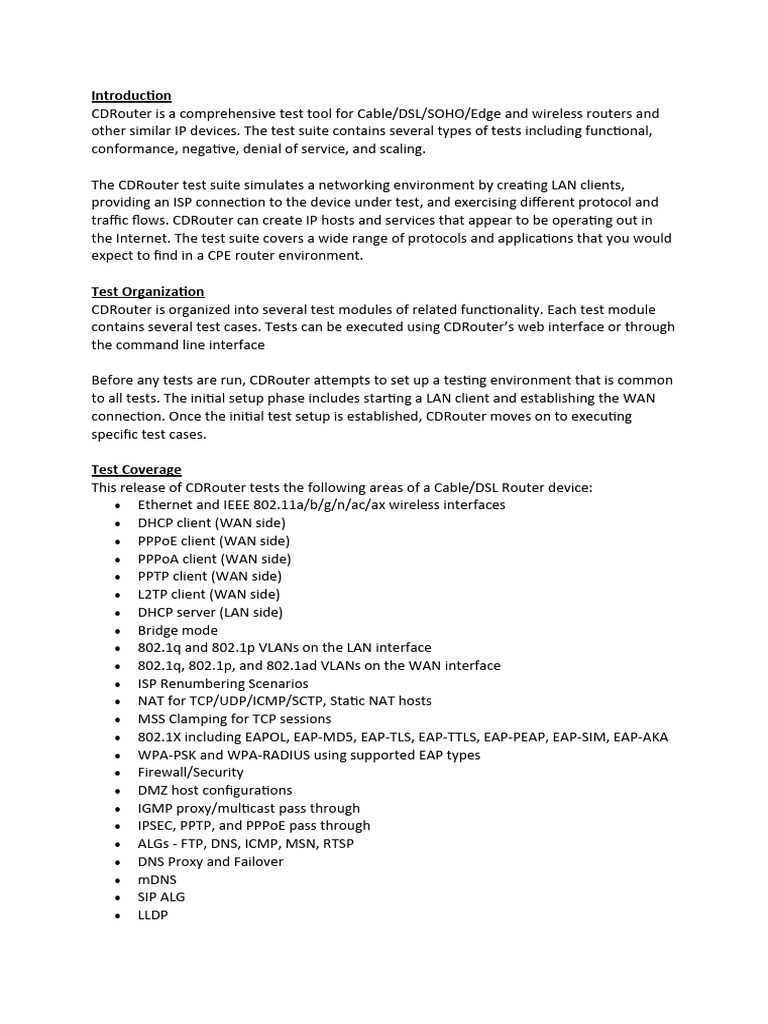 CDRouter is a comprehensive test tool for Cable/DSL/SOHO/Edge and wireless routers and