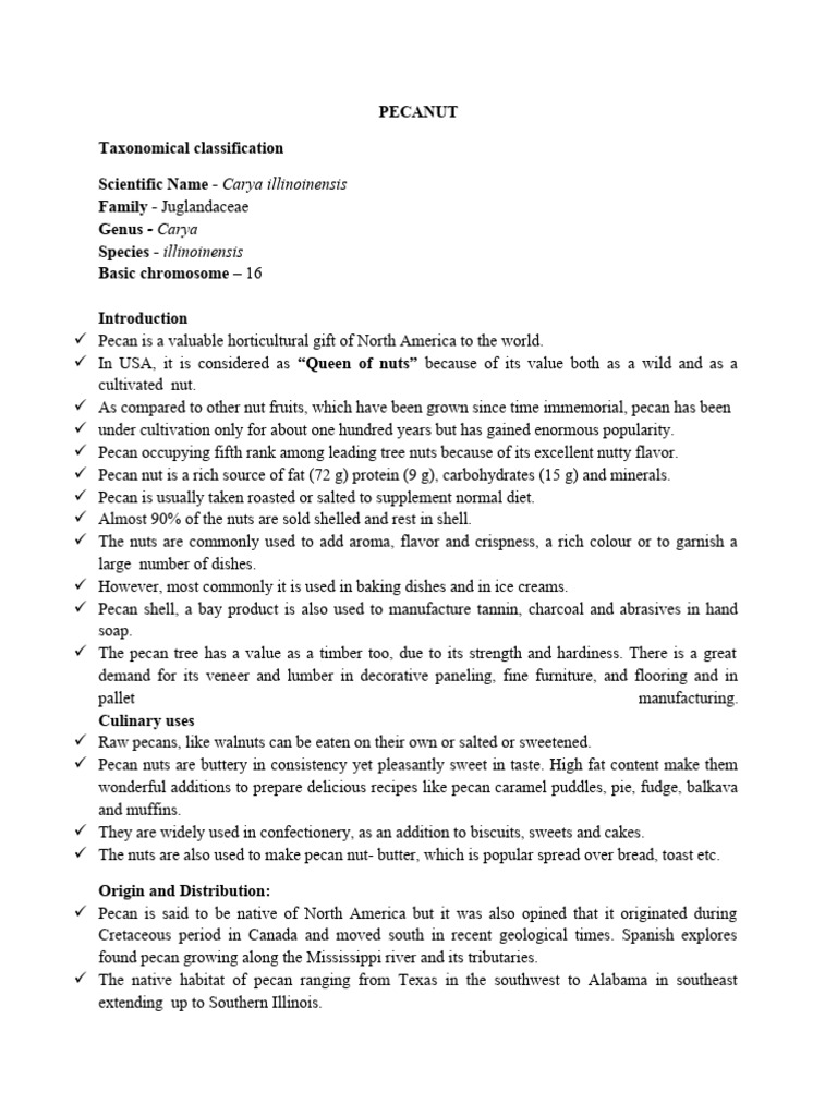 As compared to other nut fruits, which have been grown since time immemorial, pecan has been