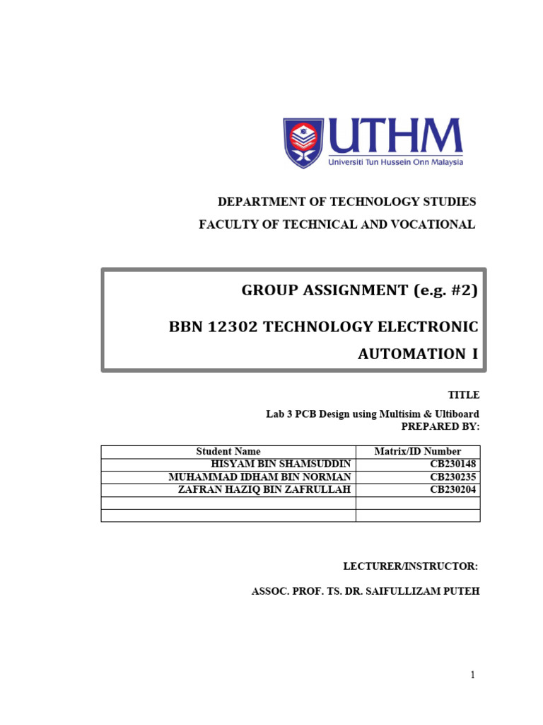 Lab 3 PCB Design using Multisim & Ultiboard