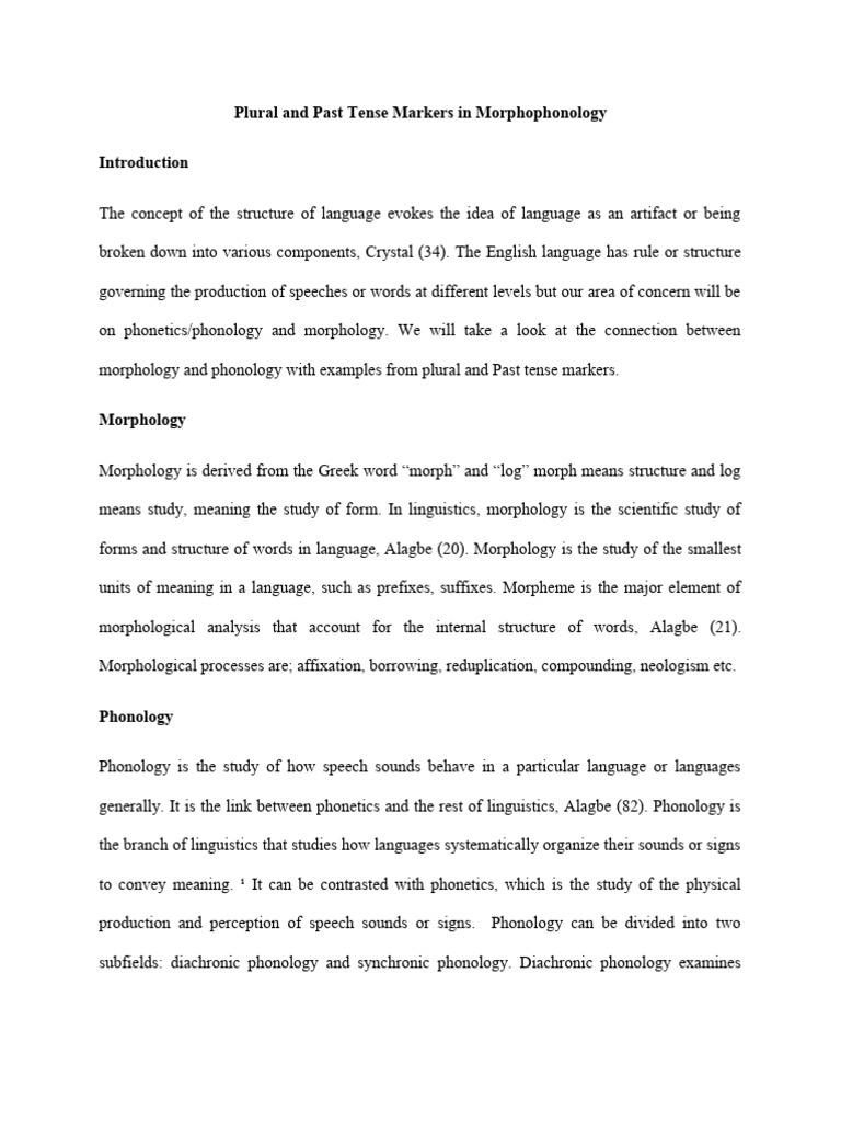 morphological analysis that account for the internal structure of words, Alagbe (21).