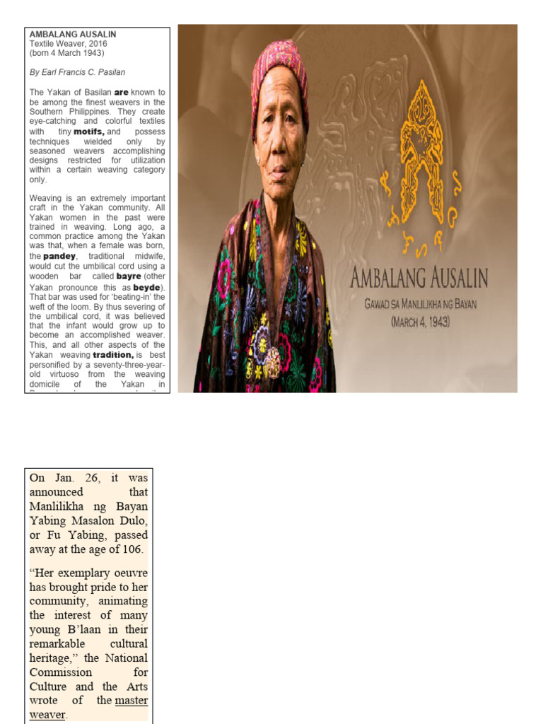 In 1992, the Philippine government, through the National Commission for Culture and the Arts (NCCA), shed light on the many cultural bearers
