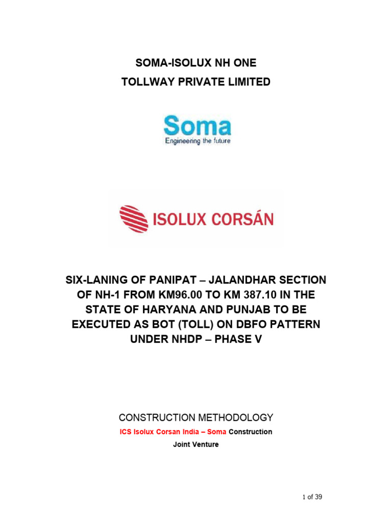 permission of Soma-Isolux NH One Tollway Pvt Ltd.