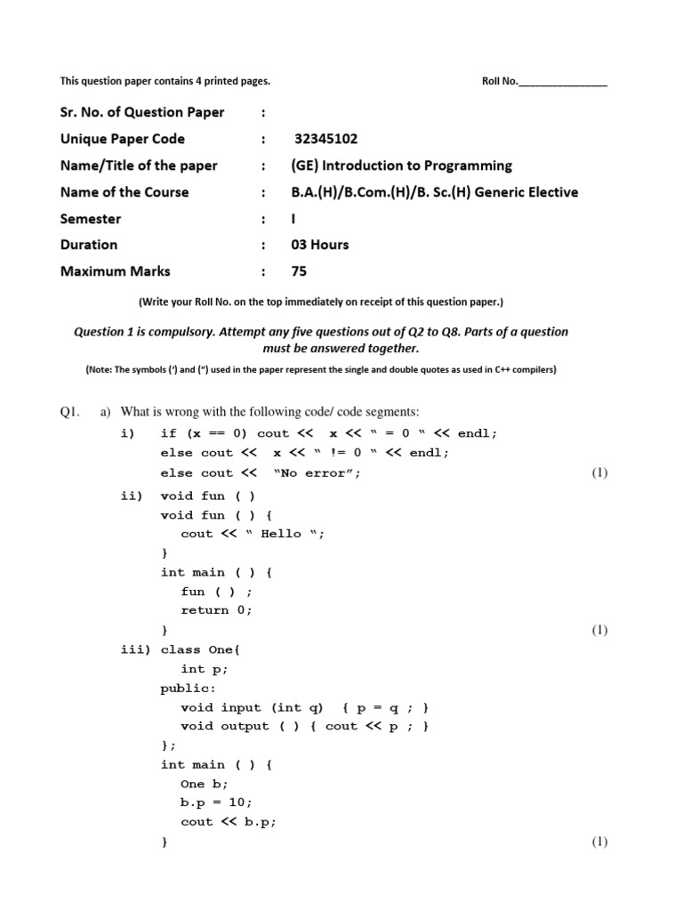 Name/Title of the paper : (GE) Introduction to Programming