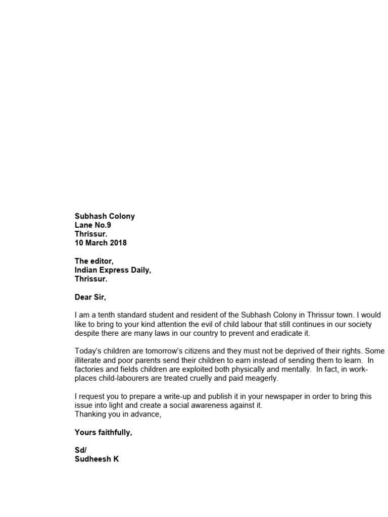 I am a tenth standard student and resident of the Subhash Colony in Thrissur town. I would