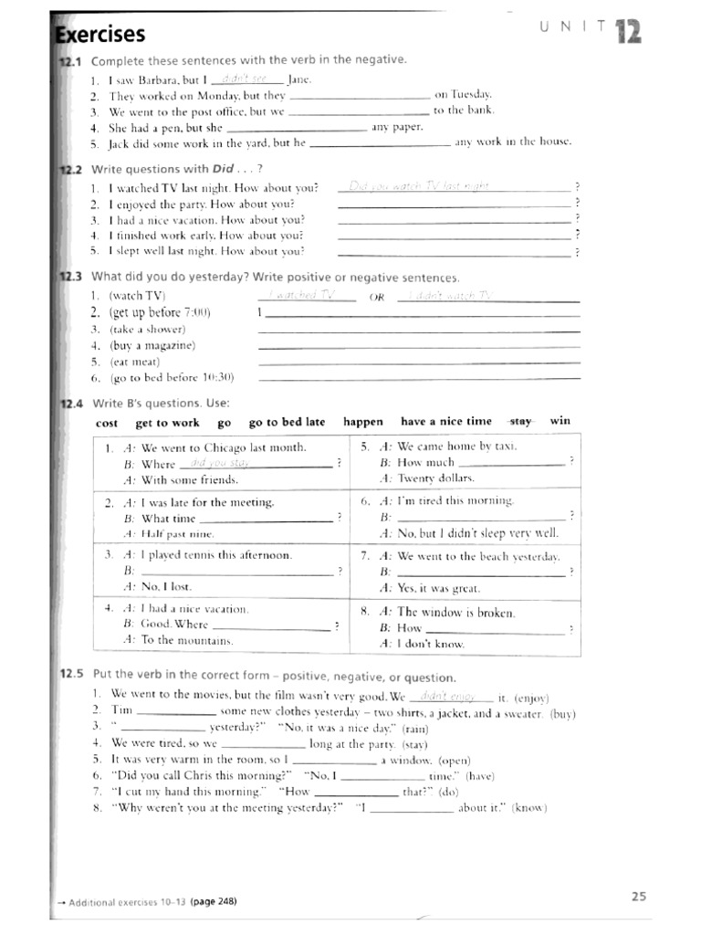 “+ Additional exercises 10-13 (page 248) 25| was doing (past continuous)