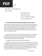 RE: APPLICATION FOR THE POST OF A SCHOOL NURSE