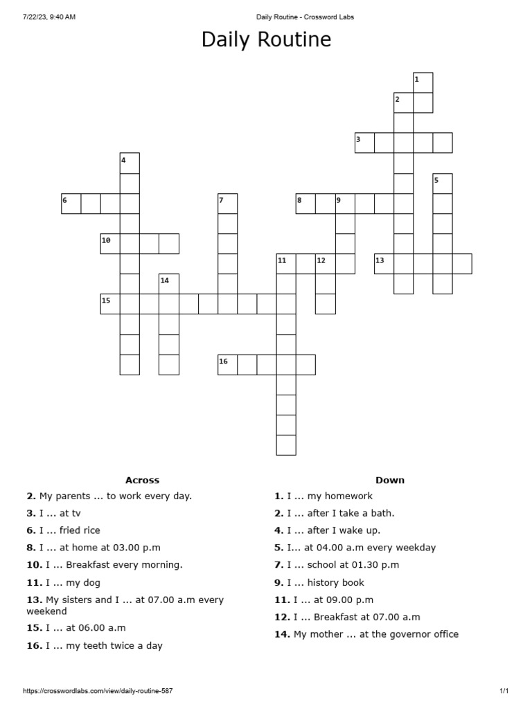 7/22/23, 9:40 AM Daily Routine - Crossword Labs