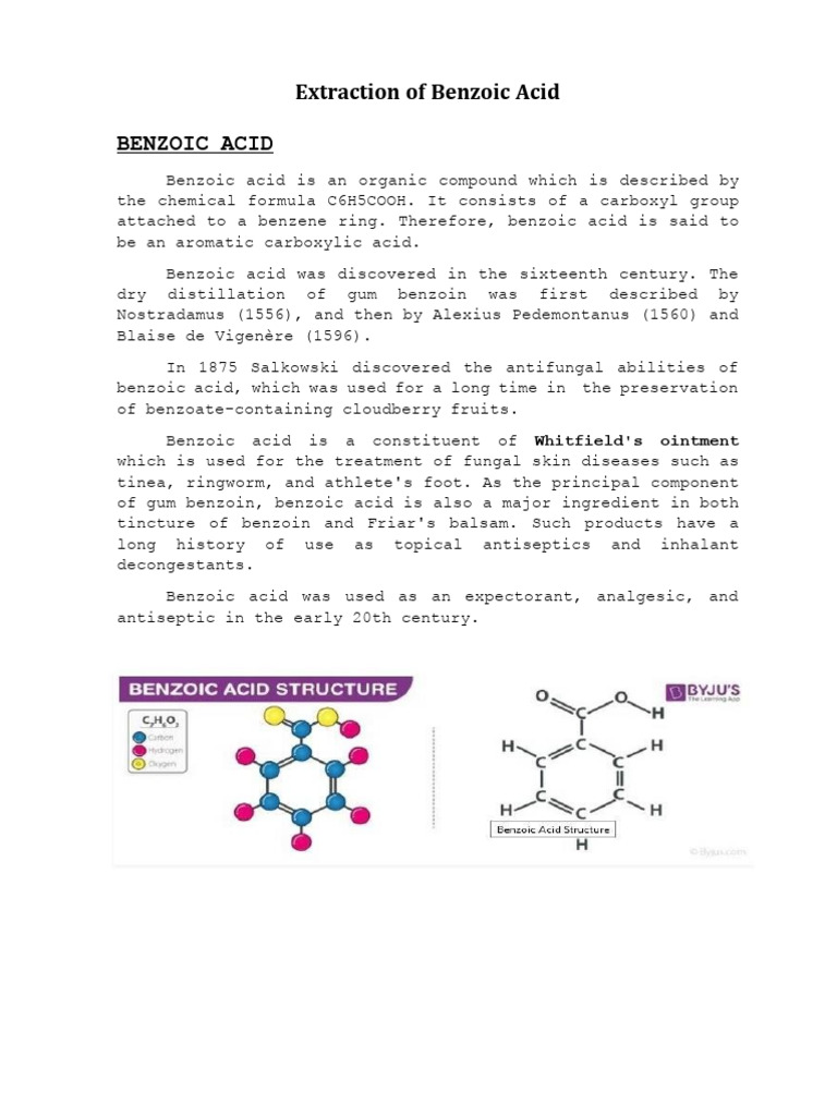 Benzoic acid was discovered in the sixteenth century. The