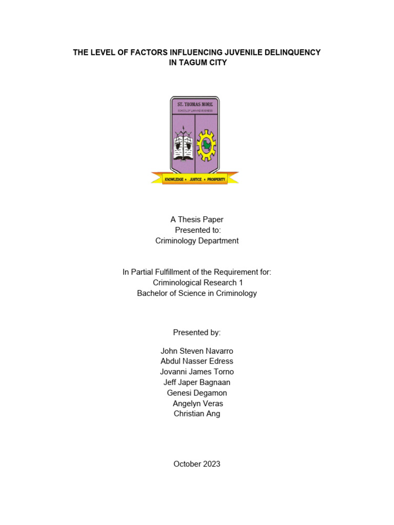juvenile commits within Tagum. Juveniles who live in poverty and not guided well within