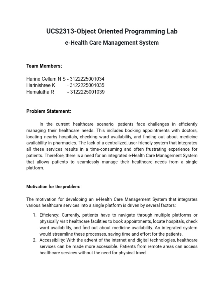 1. Classes and Objects: The system is modeled using classes such as Patient,