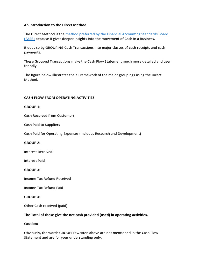 The Direct Method is the method preferred by the Financial Accounting Standards Board