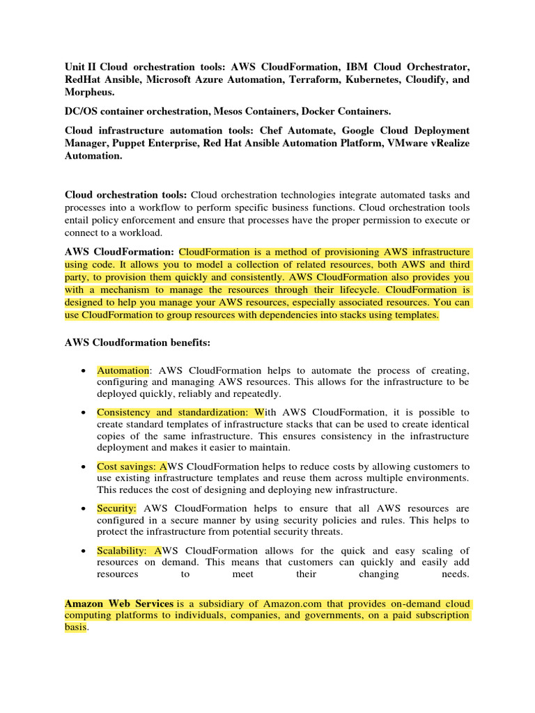 Cloud orchestration tools: Cloud orchestration technologies integrate automated tasks and