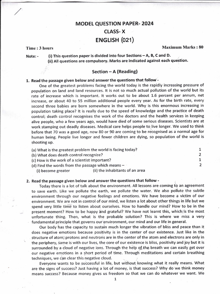 Note: - (i) This question paper is divided into four sections - A, B, c and D.