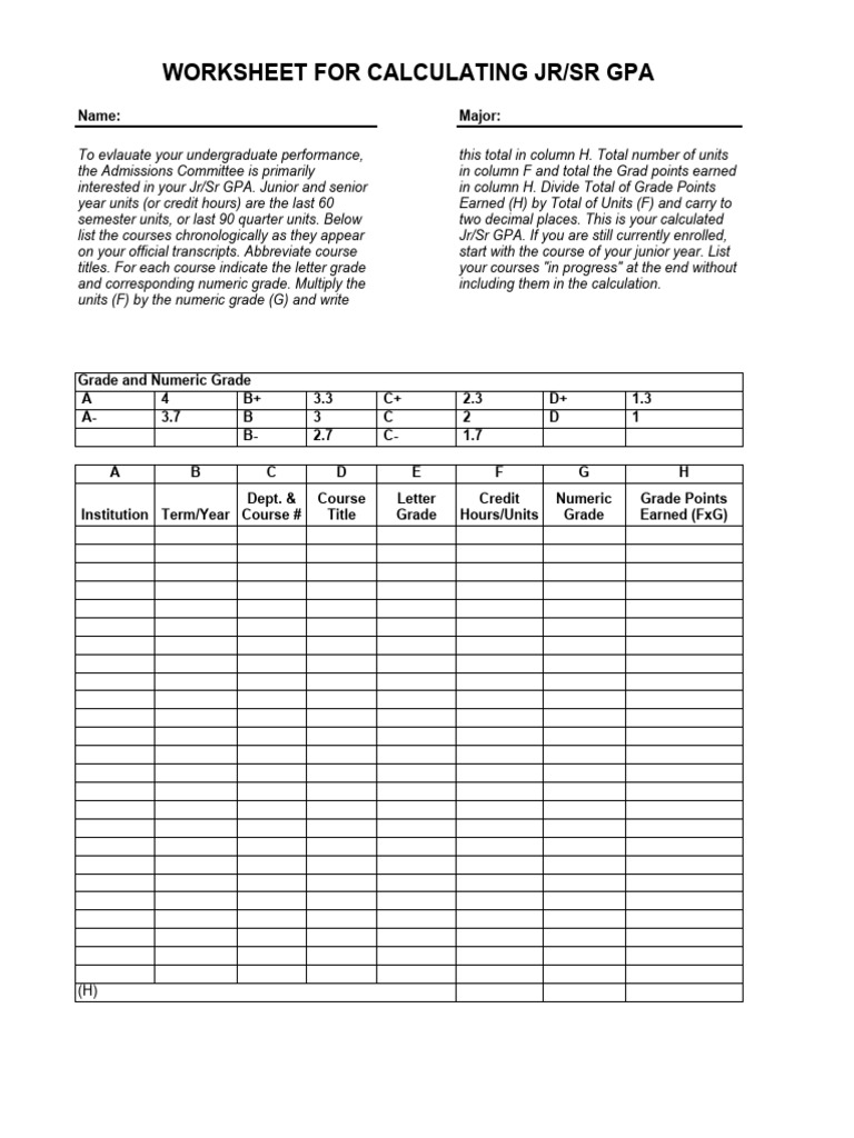 WORKSHEET FOR CALCULATING JR/SR GPA