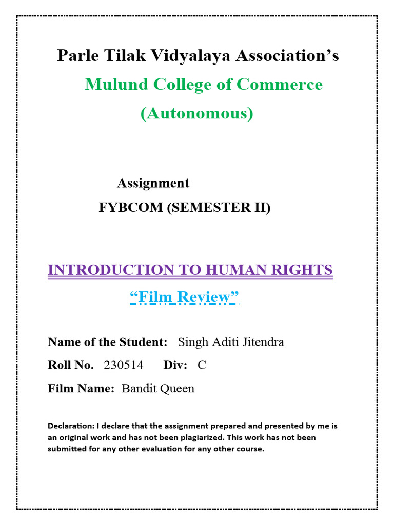 this project is all about the film review of “Bandit Queen” original name “Phoolan devi” who