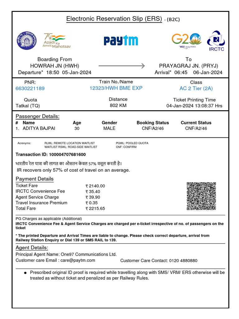 Tatkal (TQ) 802 KM 04-Jan-2024 13:08:37 Hrs