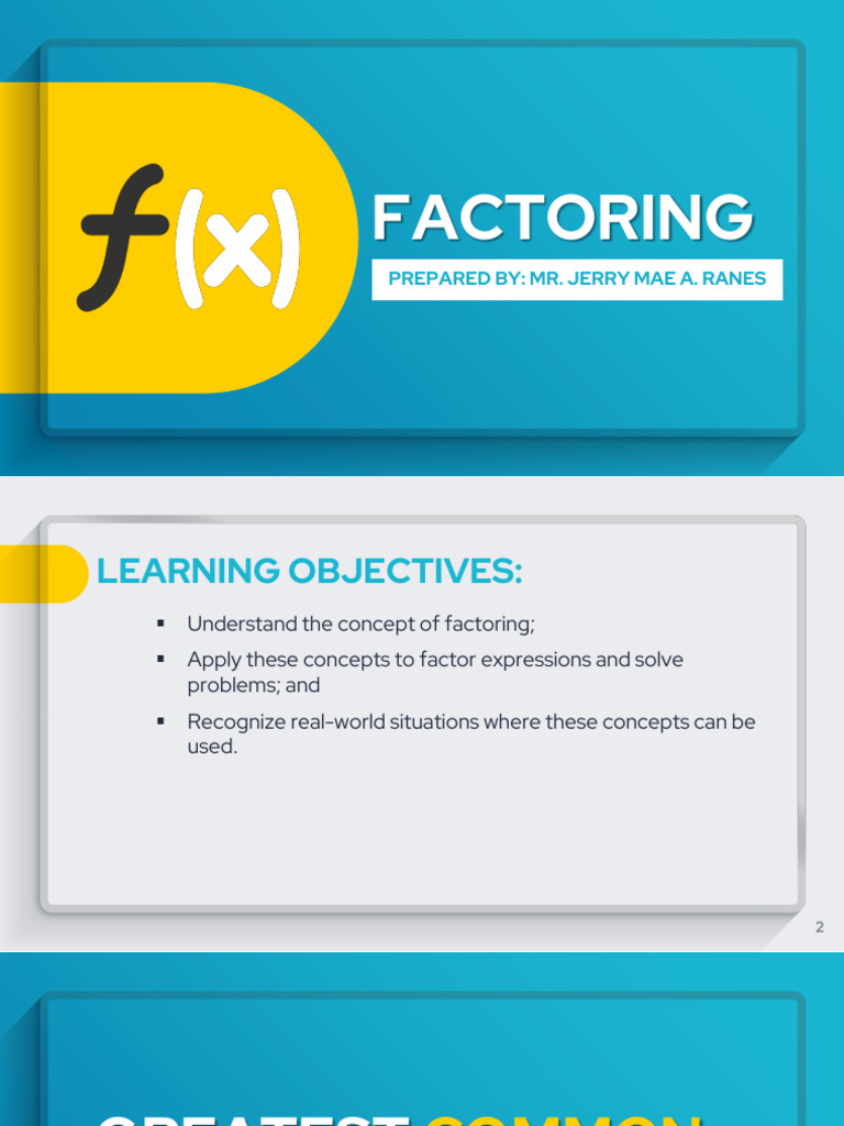 ▪ Understand the concept of factoring;
