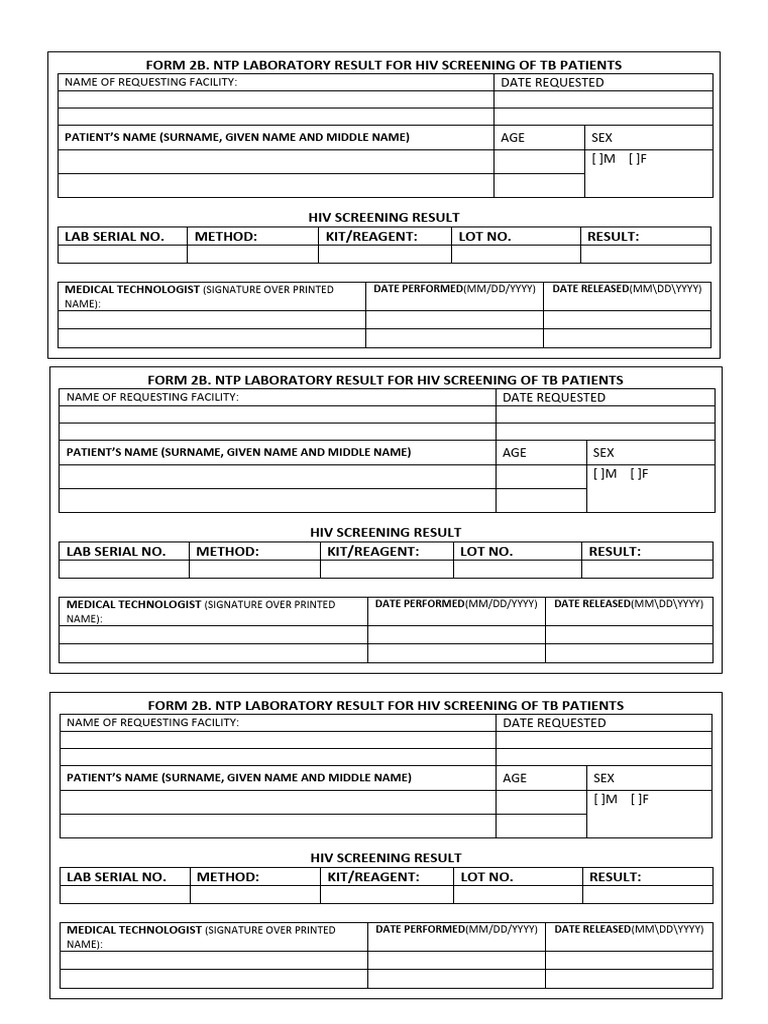 FORM 2B. NTP LABORATORY RESULT FOR HIV SCREENING OF TB PATIENTS