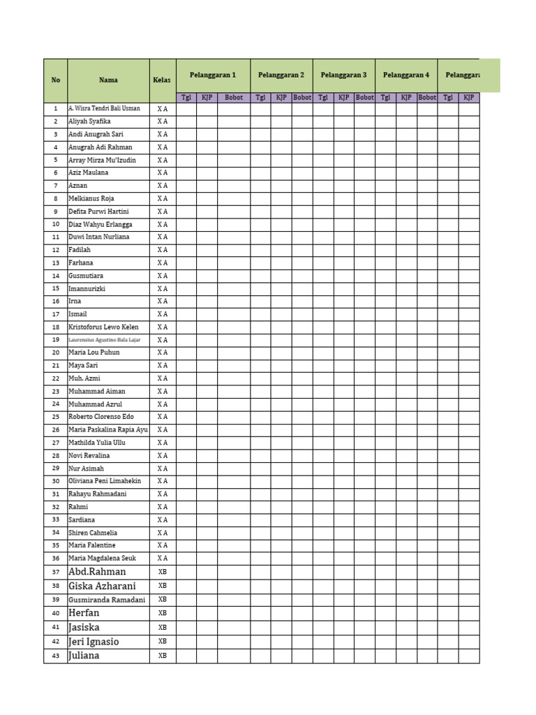 Pelanggaran 1 Pelanggaran 2 Pelanggaran 3