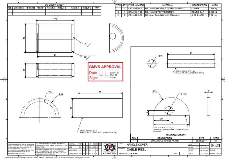 INTERNATIONAL PTE. LTD. SHALL BE SHOWN AS BELOW: FABRICATED +/- 0.2 0.2 0.5 0.5 1 1 V.P.S CO. LTD. DRAWING No.: CRL-056 REV: 1 APP' D 17/11/2014 SHEET: 1 OF 1