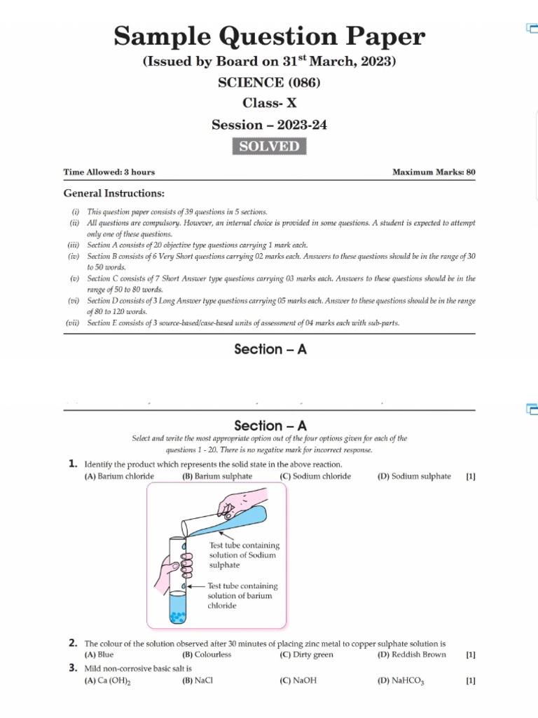 Section A consists of 20 objective type questions enprying 1 mark exc.
