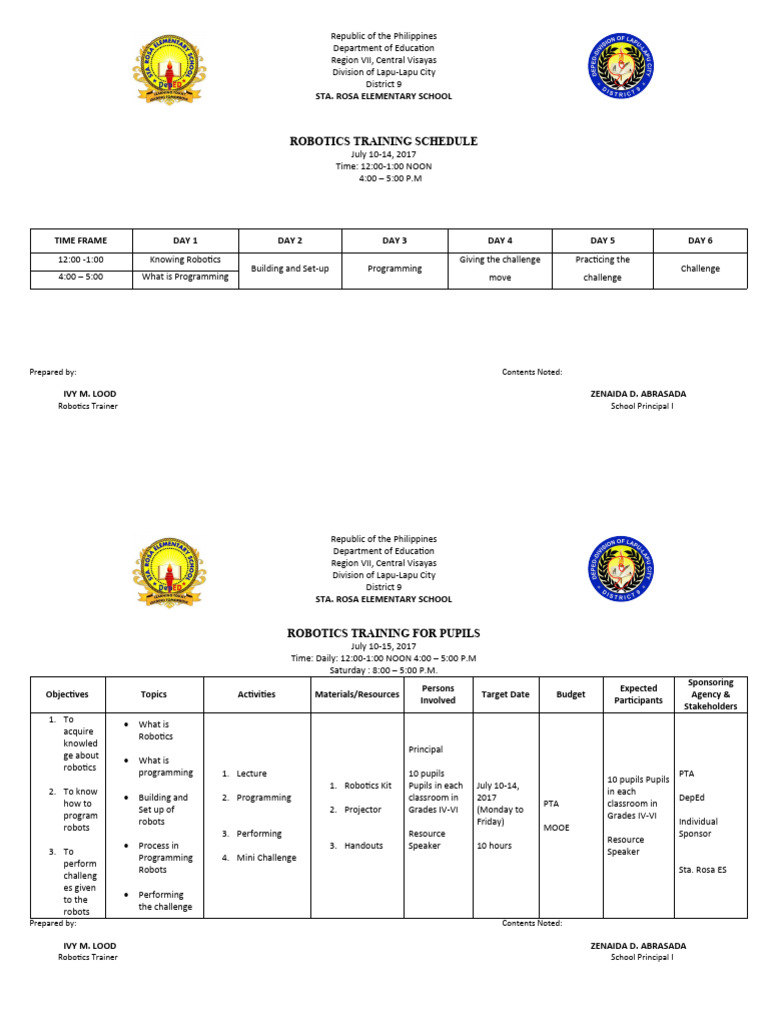 ROBOTICS TRAINING SCHEDULE