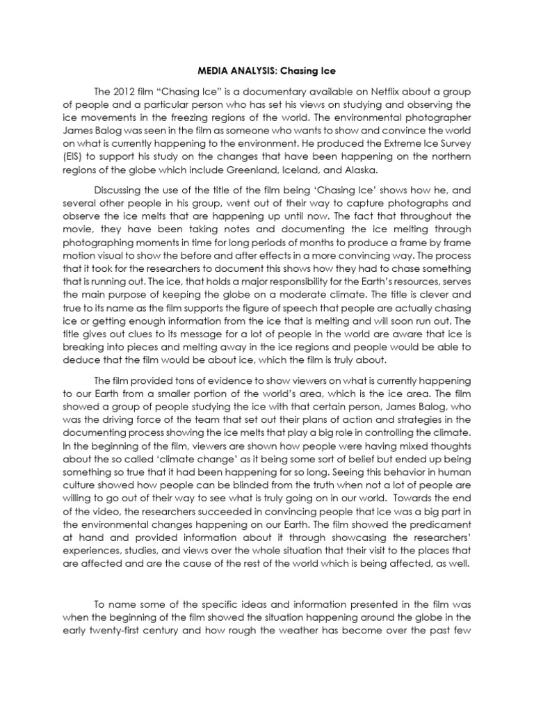 Reviewing the cinematic elements of the documentary are as if it were a normal