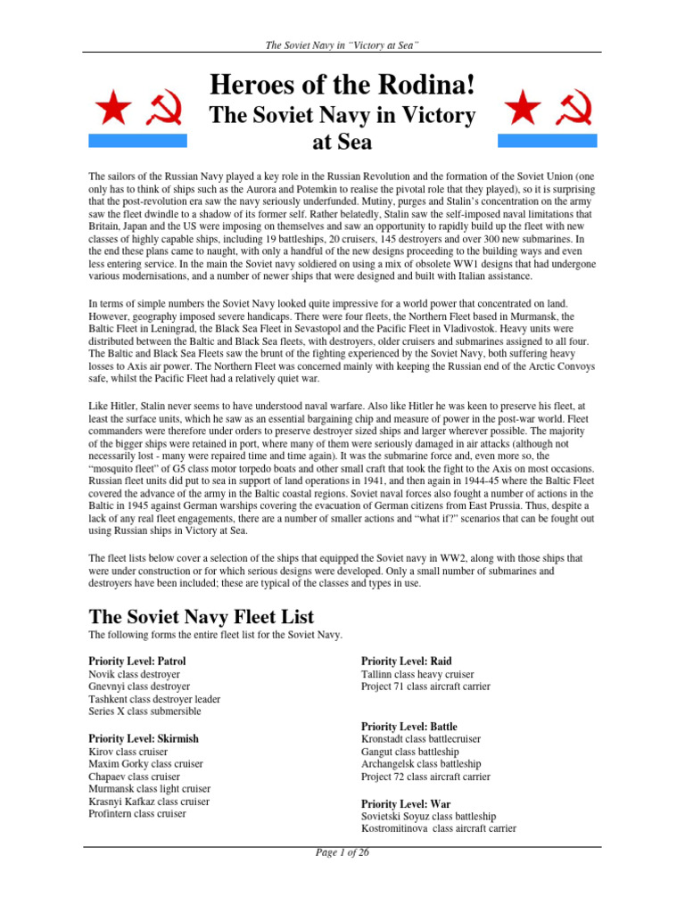The fleet lists below cover a selection of the ships that equipped the Soviet navy in WW2, along with those ships that