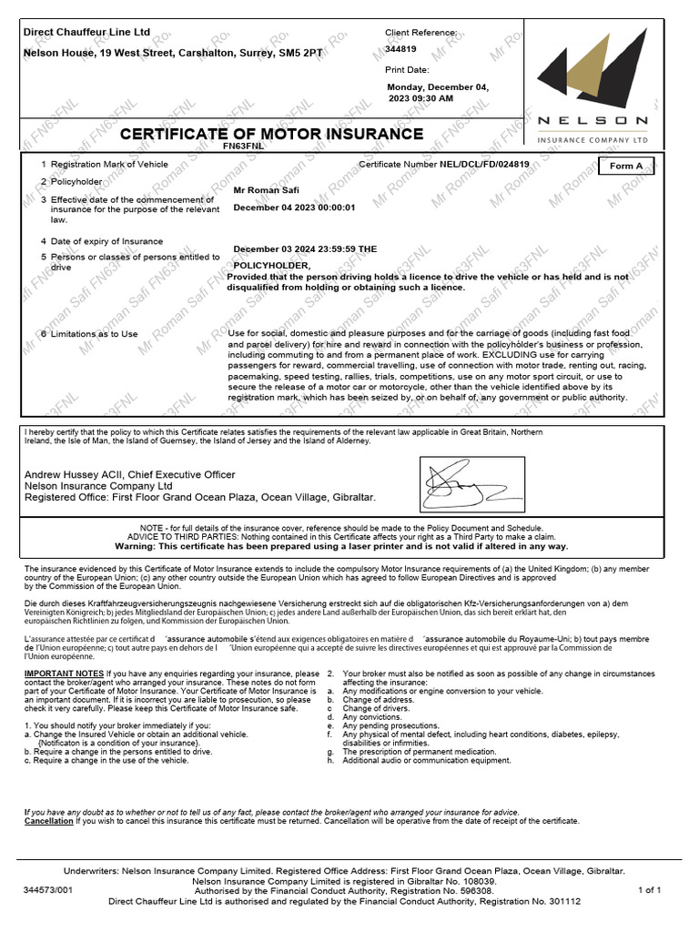 Direct Chauffeur Line Ltd is authorised and regulated by the Financial Conduct Authority, Registration No. 301112