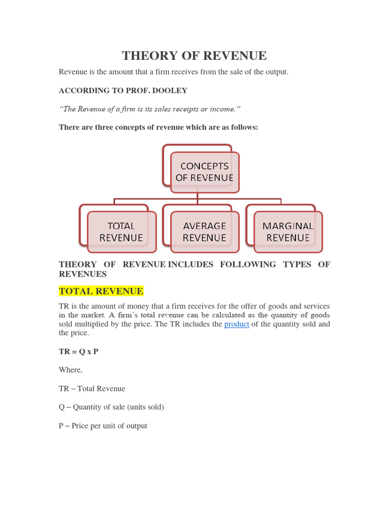 THEORY OF REVENUE INCLUDES FOLLOWING TYPES OF
